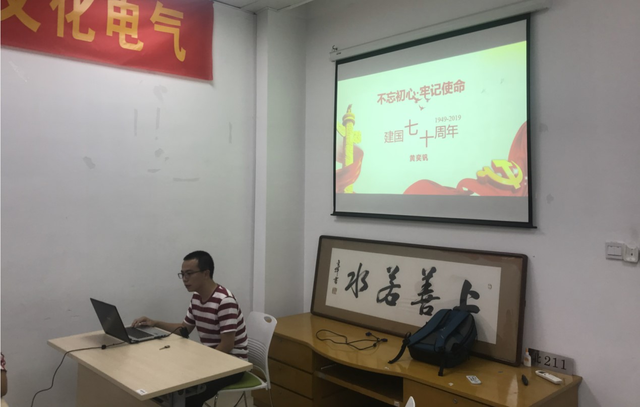 党员黄奕钒同志通过讲述建国70年来中国取得的辉煌成绩,激励大家要“不忘初心,牢记使命”,为实现中华民族伟大复兴而继续奋斗。