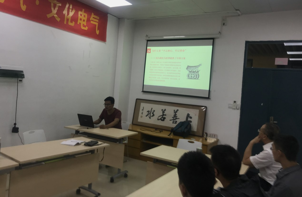 接着,党委书记何希耕研究员为全体博士研究生上了党课。何书记告诉全体党员为什么要坚定理想信念,理想信念和“初心”、“使命”的关系。接着,何书记通过对近期香港问题和国际国内形势的分析,告诉我们为什么要坚持中国共产党的领导,为什么要坚持伟大斗争。最后,何书记勉励博士生党员要努力做到关心社会与潜心学习相统一,作为国家科研力量的中流砥柱,要努力做到“不忘初心,牢记使命”。