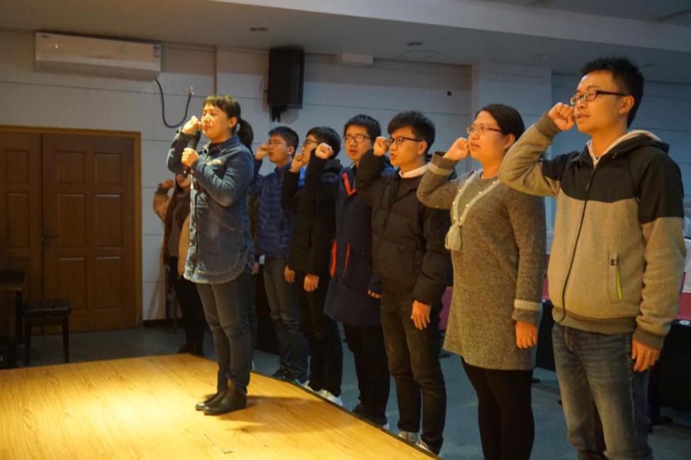 随后,由许海燕老师带领全体预备党员进行入党宣誓,全体预备党员郑重地举起右手,面对鲜红的党旗,庄严地宣读了入党誓词。