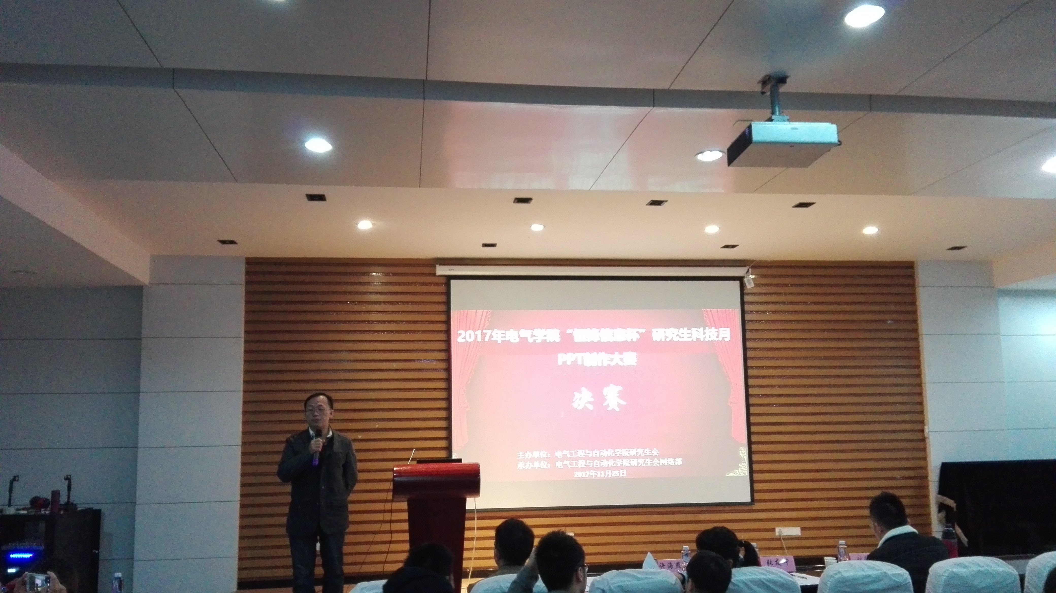 “恒锋信息杯”科技月ppt制作大赛的决赛。本次决赛的评委是教务处综合办公室科长张友坤老师,我院研究生导员许海燕老师以及刘德军学长。本次决赛由唐玲玲同学主持,一共十四支队伍来进行角逐。