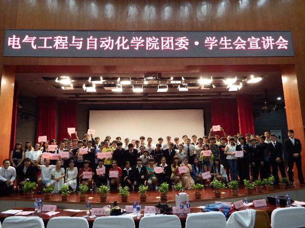 ·团委学生会六大中心,共十八个部门的代表按顺序依次上台宣讲,风格或幽默,或深沉,或激情,比如职协,楼委会,女生部,学习部等部门就充分发扬了娱乐精神,让新生们的笑声此起彼伏,而秘书处,辩论队等部门却以深情的演讲打动了在场的听众,实践部,科技部,体育部等部门则通过慨激昂的论说震撼着台下的人们,除此之外,文化部艺术团的钢琴、提琴和舞蹈表演亦是一大亮点,博得了众人的喝彩。宣讲会最后,2013级学生会成员集体合照,本次活动圆满结束。