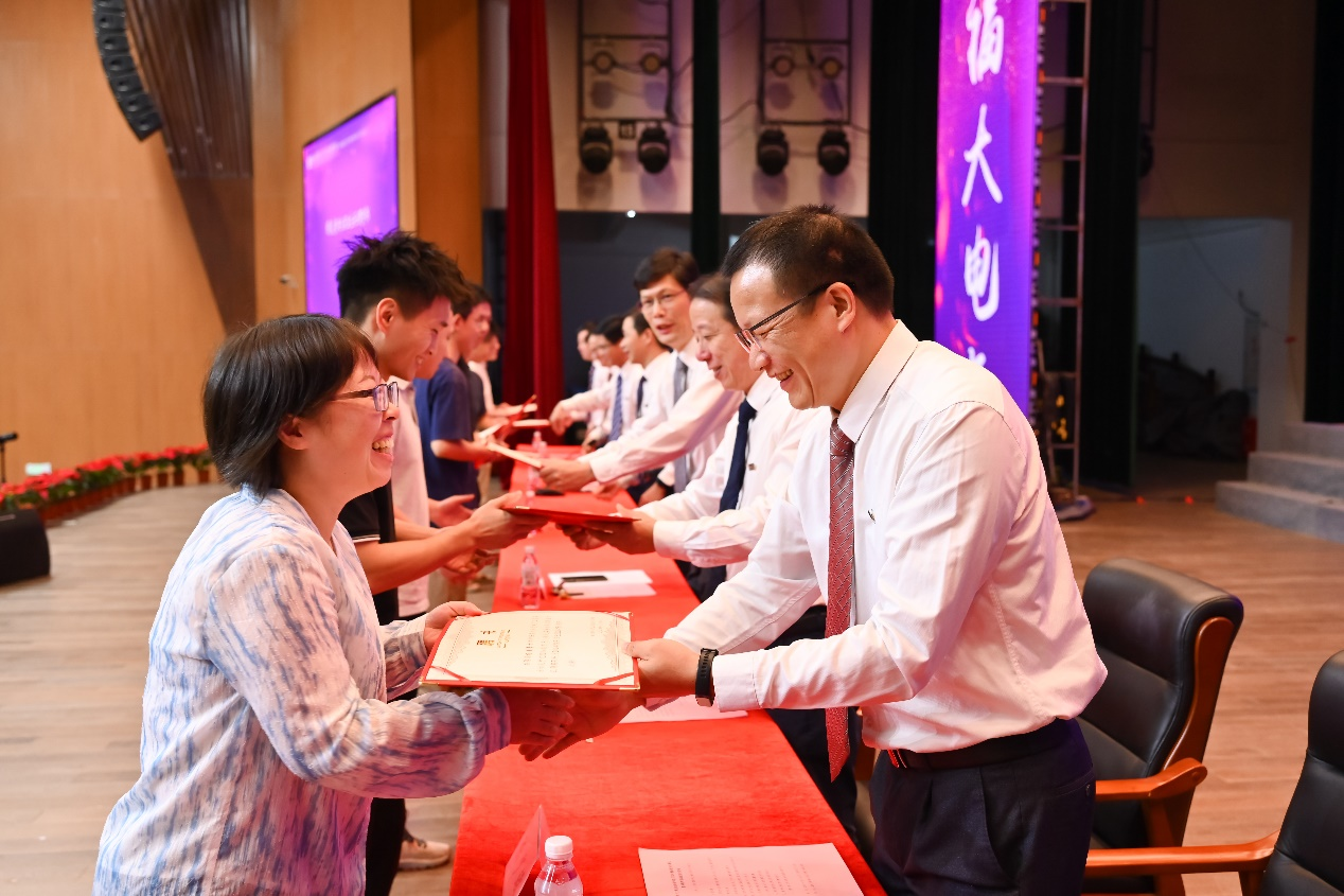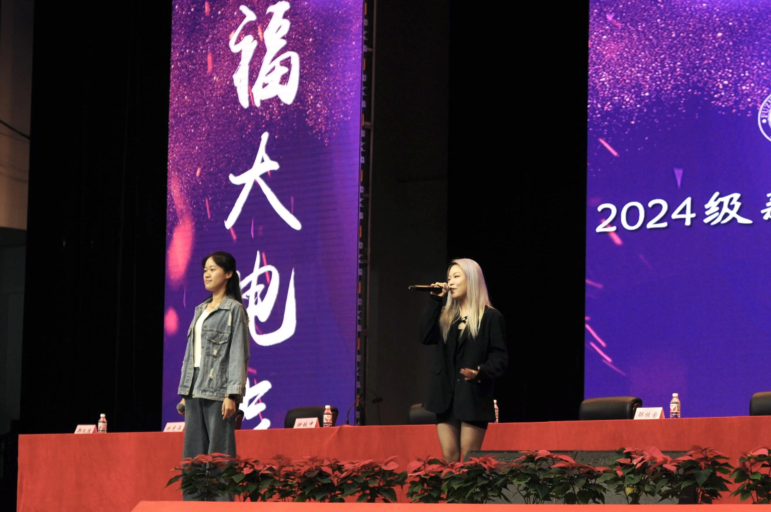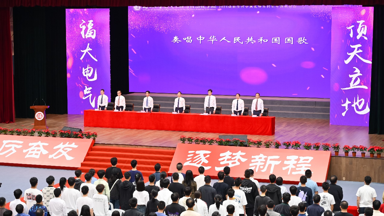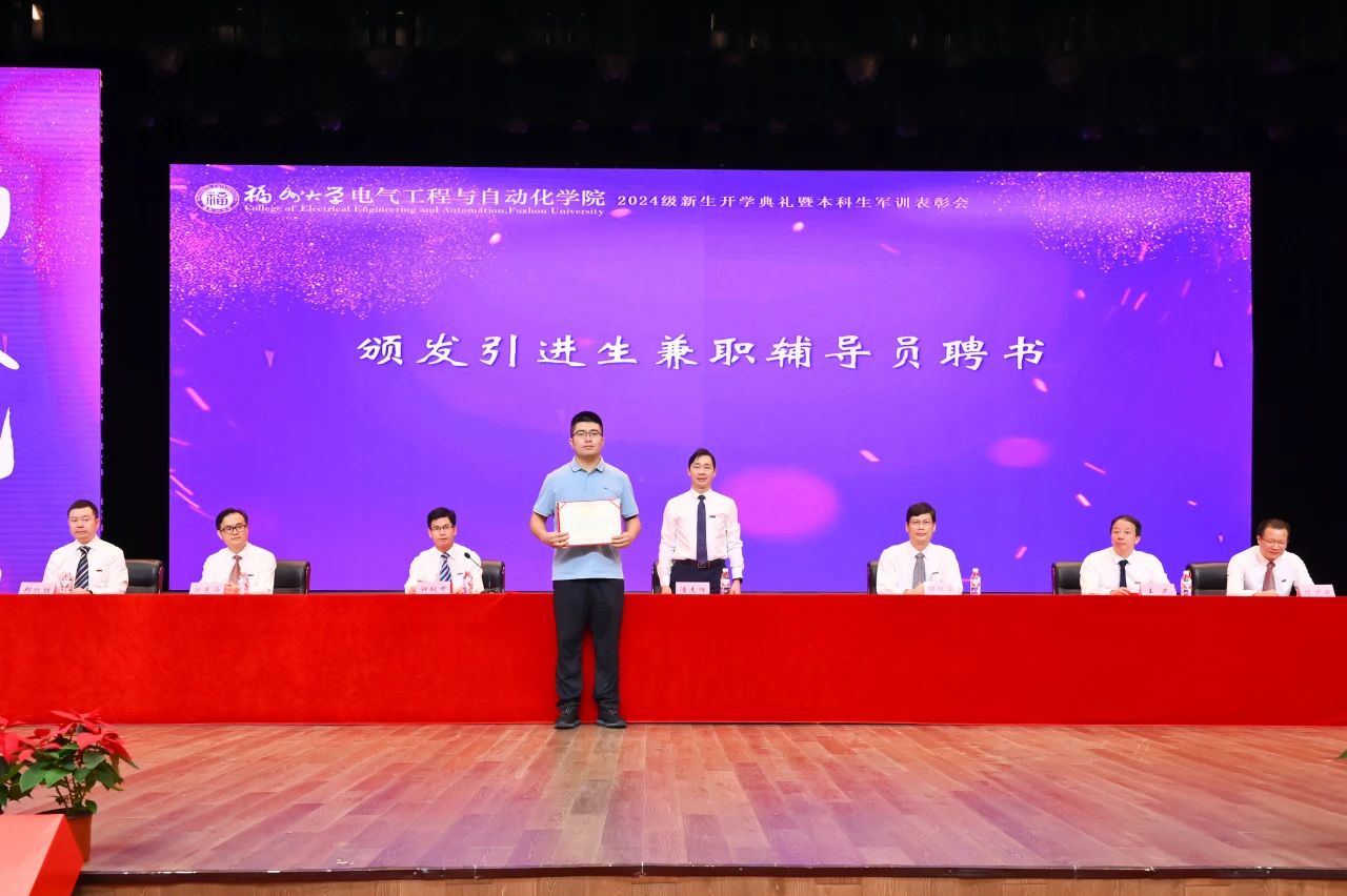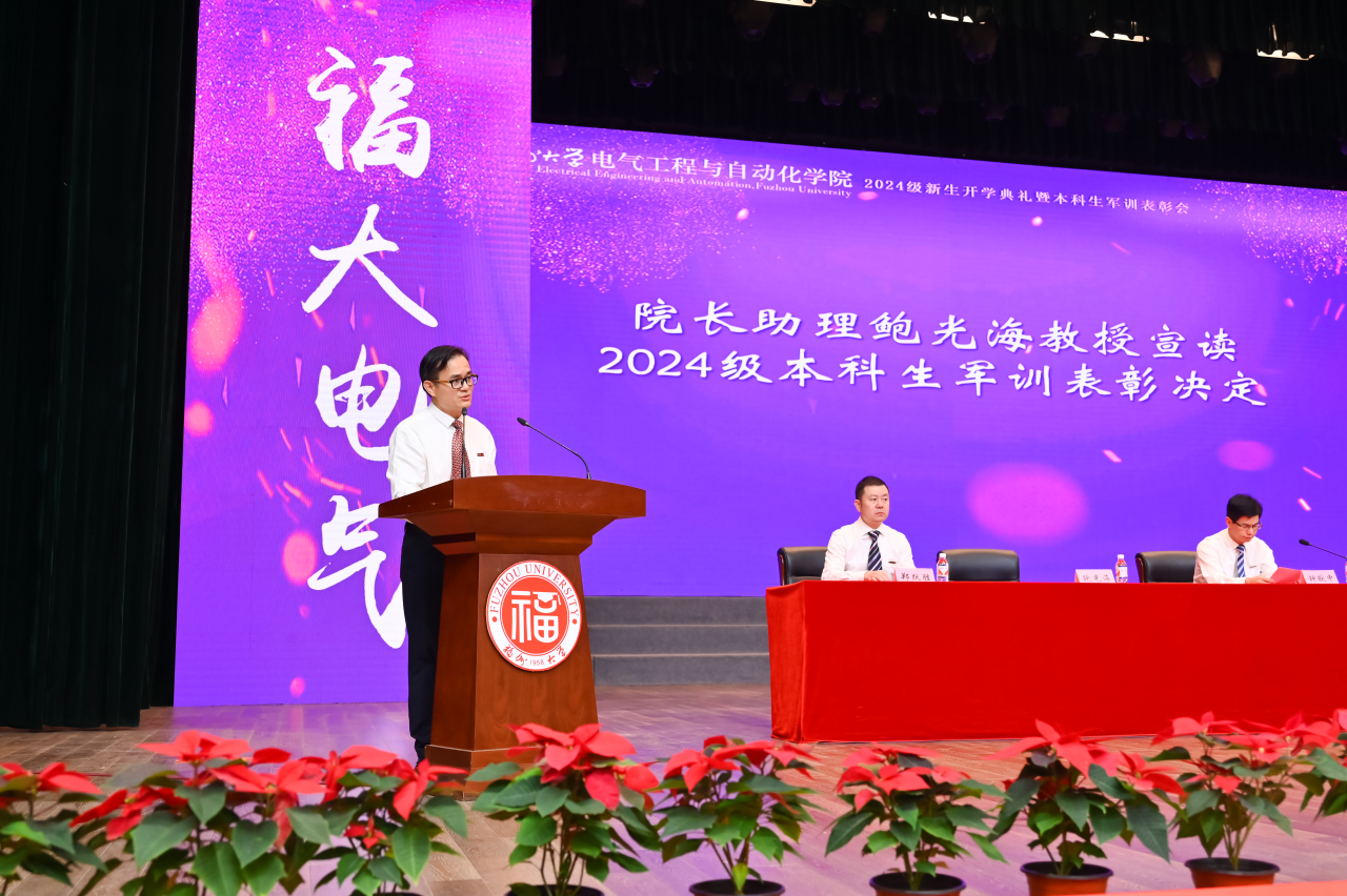 本科生新生代表孙微茵同学代表新生向师长和亲友表达感谢,并分享了自己坚毅扎实的成长历程。孙微茵提到,在福大她不仅感受到了学院的温暖,还通过担任年级长等职务获得了成长。她表示,作为新时代“电气人”,不仅要学习知识、增长本领,还要传承“福大电气,顶天立地”的精神,与时代同频共振,成为爱国奉献、追求卓越的新时代青年,共同为学院和学校争取荣誉,创造辉煌。