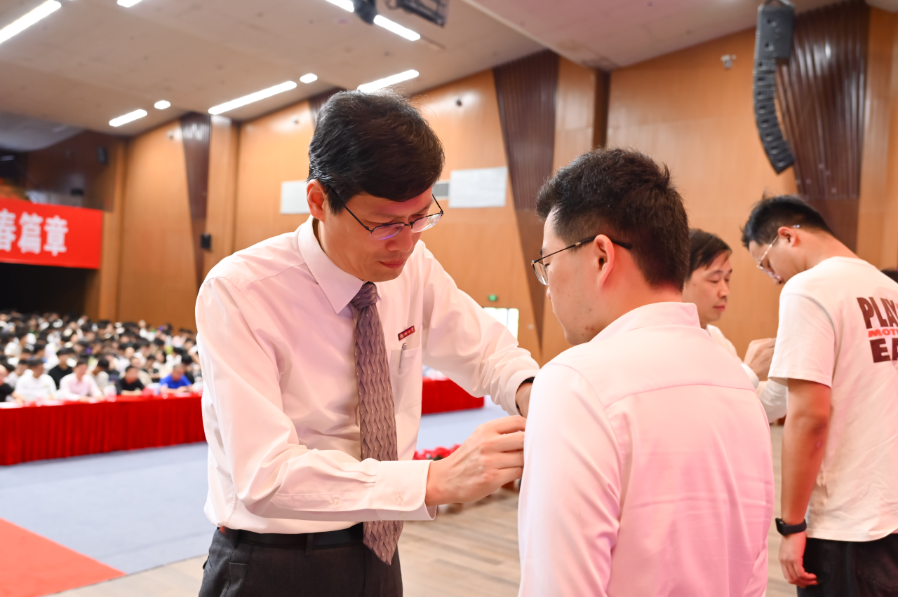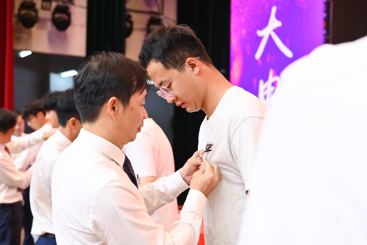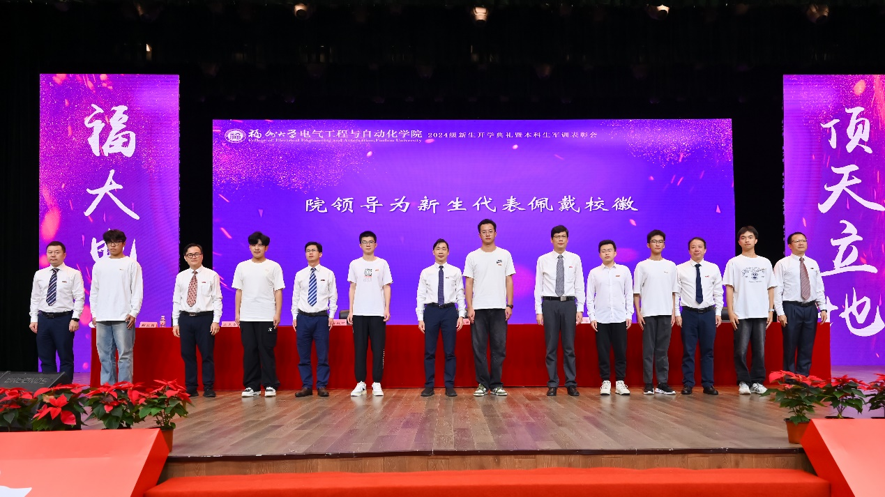 校徽佩戴在胸前,新生们从此与福大“血脉相连”,他们将传承福大人“明德至诚,博学远志”的校训,延续“福大电气,顶天立地”的担当,立志做有理想、敢担当、能吃苦、肯奋斗的新时代好青年!