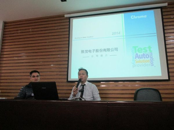 电气工程学院二楼多媒体教室举行了微型电网的讲座与交流,到场做技术讲座与交流的是来自台湾chroma(台湾致茂)的田世雄经理和技术工程师林志成(Nigel),91视频